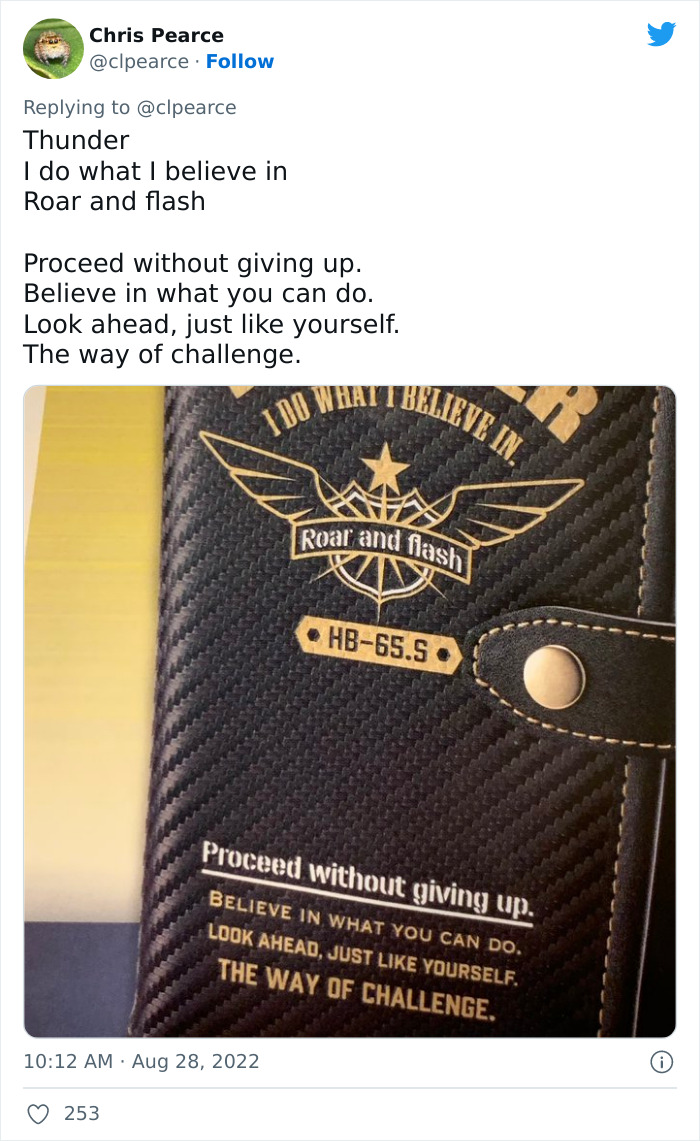 Japanese-English translator Chris Pearce started up a witty thread on Twitter that immediately went viral. He shared how he uncovered the “many ancient secrets to living,” all stitched in English on products found in Japan, and it is thoroughly hilarious. The phrases are, at the same time, incredibly deep and absolutely nonsensical, and we love it.