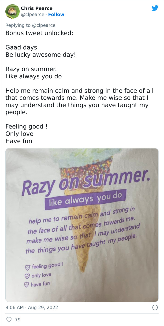 We weren’t the only ones, though. Others started sharing the nonsense phrases they’ve found elsewhere. We’ve collected the best parts of the discussion with you, and it should bring a smile to your face whether you’re a fan of comedy, design, Japanese culture, or philology. You can share your thoughts in the comments, Pandas! Oh, and if you’ve got any similar examples of weird English phrases on random things, tell us all about them, too.