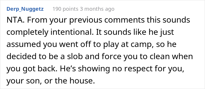 But after a smooth-sailing week at camp, she was shocked to return to a wrecked house. The wife got so fed up being the one cleaning up after her hubby that she gave an ultimatum that seemed to have strained their marriage. Scroll down for the full story, as well as some reactions from readers, and then let us know in the comments what you think about the situation.