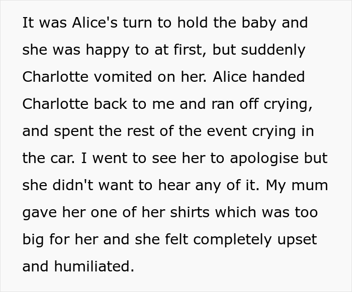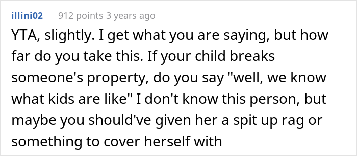 One redditor put it very well that the mom shouldn’t have been expected to act as the protector of her cousin’s wardrobe. That’d just be silly. If you dress up nicely and hold the baby of your own free will, you can’t blame anyone but yourself if it does what babies do. It could have happened to anyone. And it’s not like the baby can tell designer clothes from regular ones (though the Universe, always a fan of irony, seems to know the difference very well).